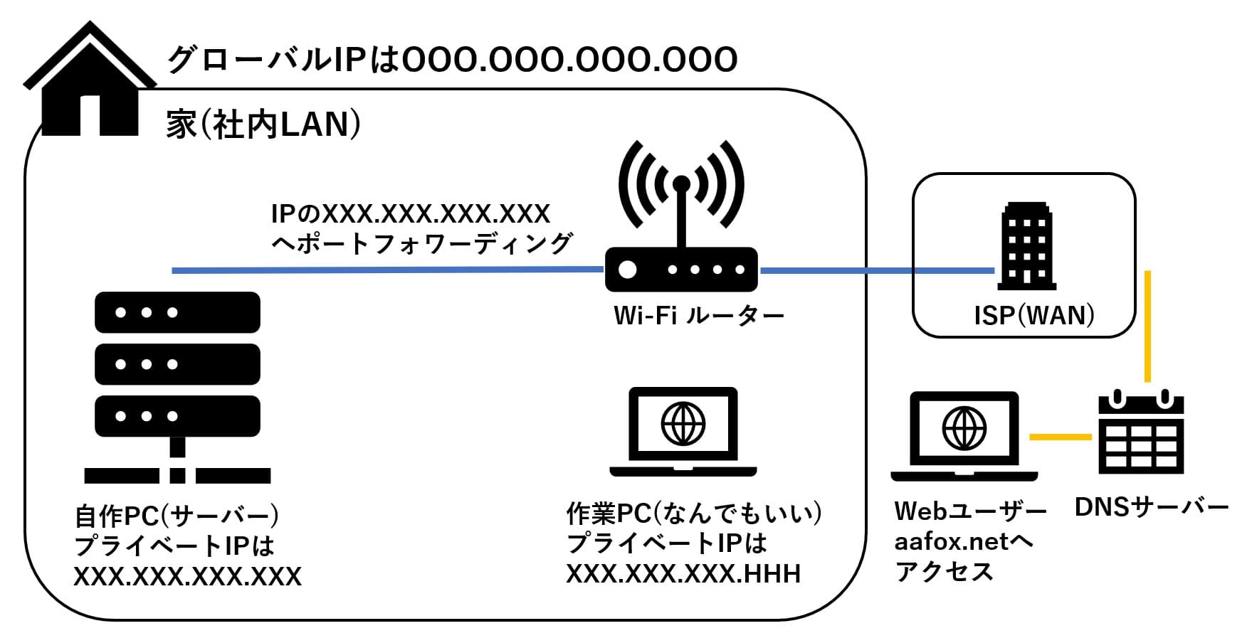 本ブログでは、写真の構成を組むことで、自宅のパソコンをaafox.netのようなドメインで