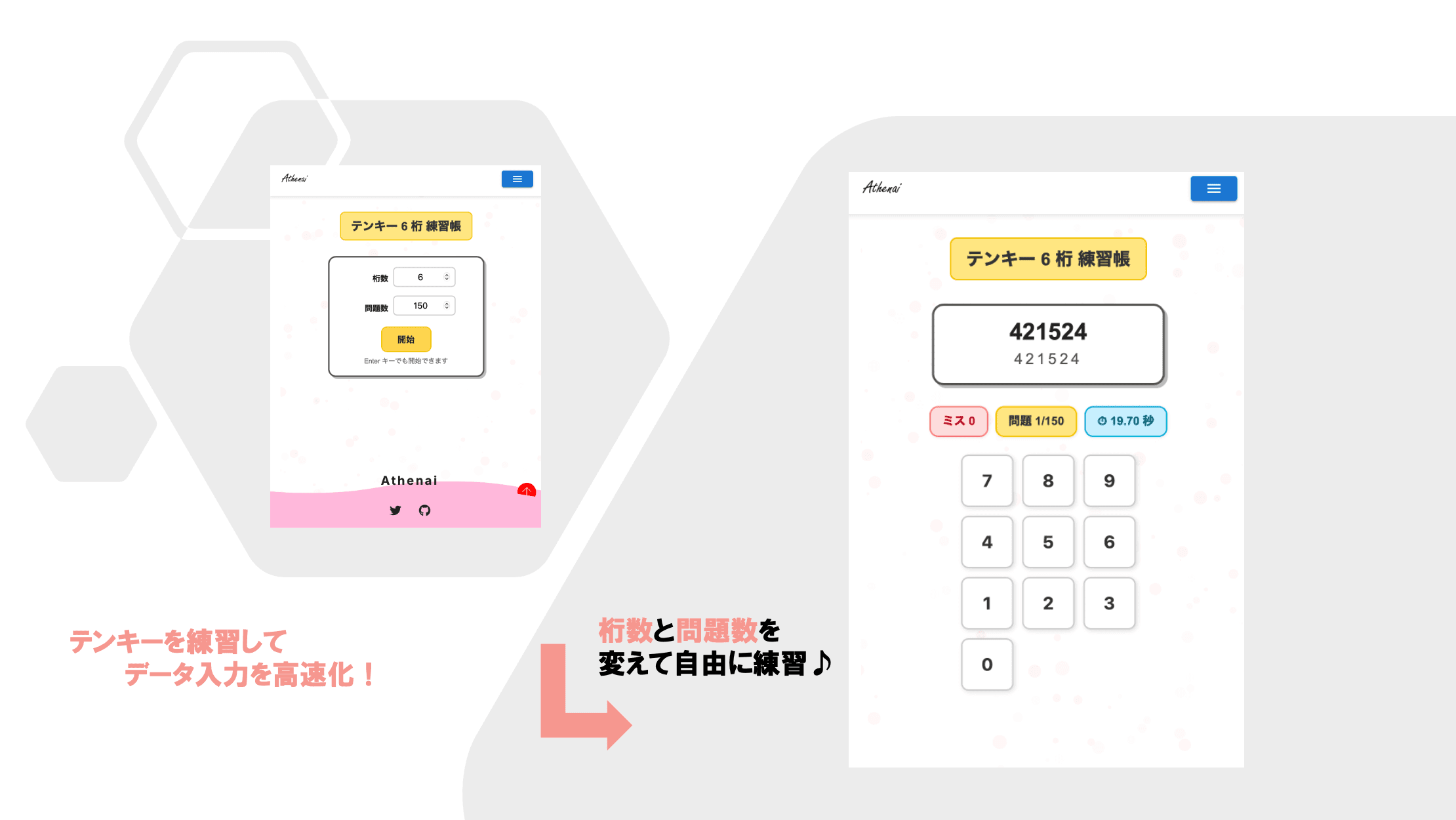 スマホやパソコンにテンキーのキーボードを接続して自由に練習してね